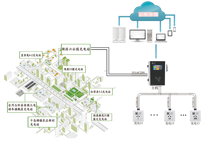 云智能充電系統(tǒng)以電瓶車安全充電為基礎,基于GPRS、Ethernet構建互聯(lián)網+物聯(lián)網+人聯(lián)網的模式, 通過自主研發(fā)智能充電樁、主機、通訊設備、服務端和客戶端應用系統(tǒng),為降低電瓶車充電火災隱患,實現安全充電的終極目標提供技術手段及相關服務。